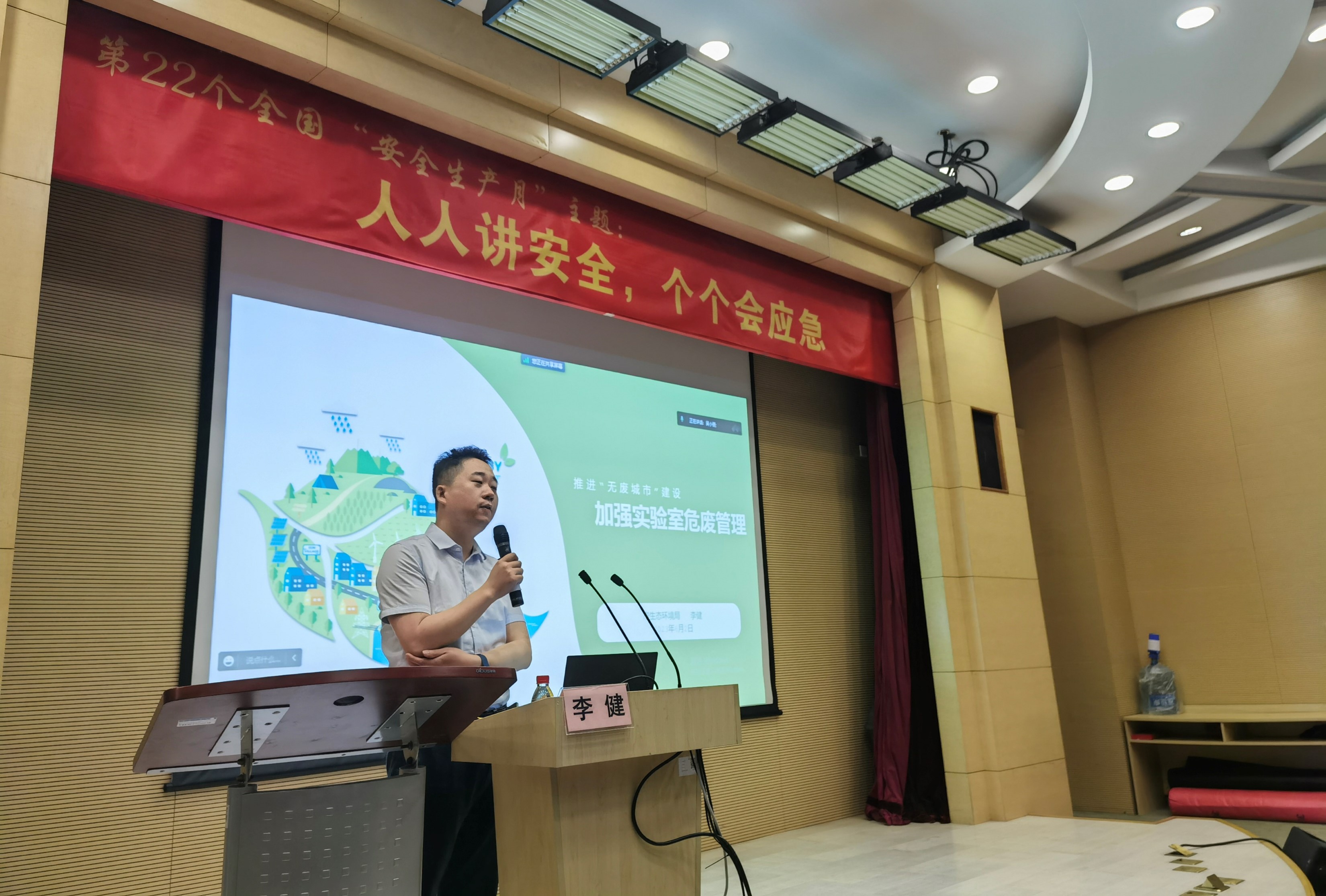 资产与实验室安全管理处副处长张义对李健的精彩演讲表示感谢,同时结合学校实验室安全检查中发现的废弃物常见隐患,从实验室废弃物的分类、日常管理及处置要求等方面进行了规范处置提醒。学校将以习近平新时代中国特色社会主义思想为指导,持续推进习近平总书记关于安全生产重要论述入脑入心、见行见效,不断增强安全工作的思想自觉、责任自觉和行动自觉,全力维护校园平安稳定。