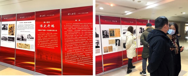 观展期间,党员同志们认真观看,积极交流,认真分享对这段峥嵘岁月的思考和感悟。通过生动的图文讲解,跟随着历史的讲述,党员同志们仿佛置身于从“一大”走向“七大”的历史潮流中,身临其境感受着中国共产党从艰难诞生走向辉煌壮大的探索之路。